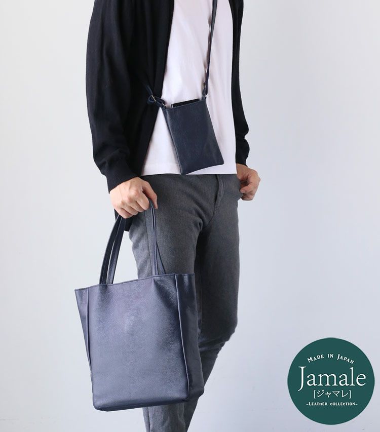 牛革 トートバッグ メンズ スマホポーチ セット Jamale 日本製 本革 親子バッグ 縦型 トート ブランド 無地 おしゃれ 肩かけ 革 肩掛け 持ち手 かるいかばん 上品 ブランド ジャマレ レザー 通学 通勤 ビジネス 実用的 ギフト プレゼント(07000624r)
