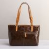ローズの花柄を牛革に型押しした革で仕立てた本革トートバッグ。