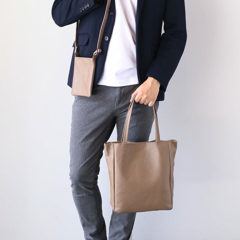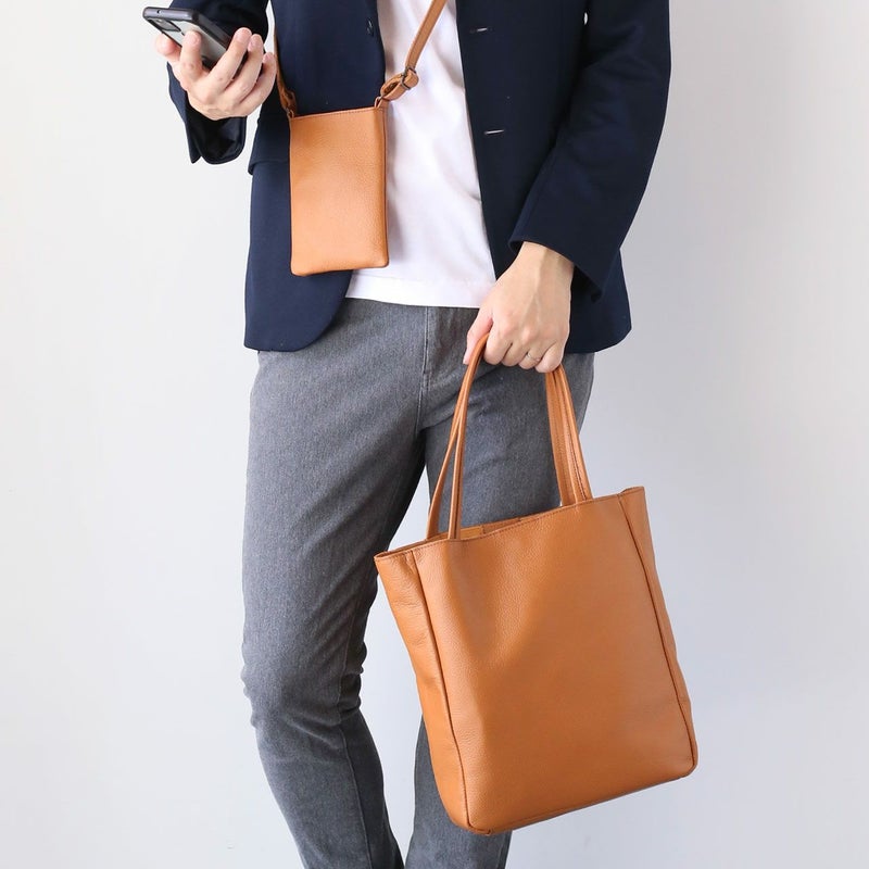 牛革 トートバッグ メンズ スマホポーチ セット Jamale 日本製 本革 親子バッグ 縦型 トート ブランド 無地 おしゃれ 肩かけ 革 肩掛け 持ち手 かるいかばん 上品 ブランド ジャマレ レザー 通学 通勤 ビジネス 実用的 ギフト プレゼント(07000624r)
