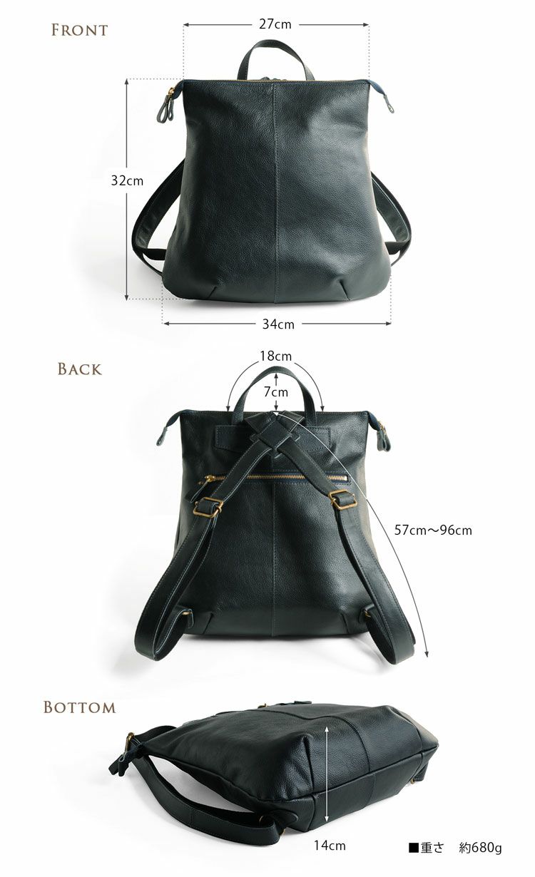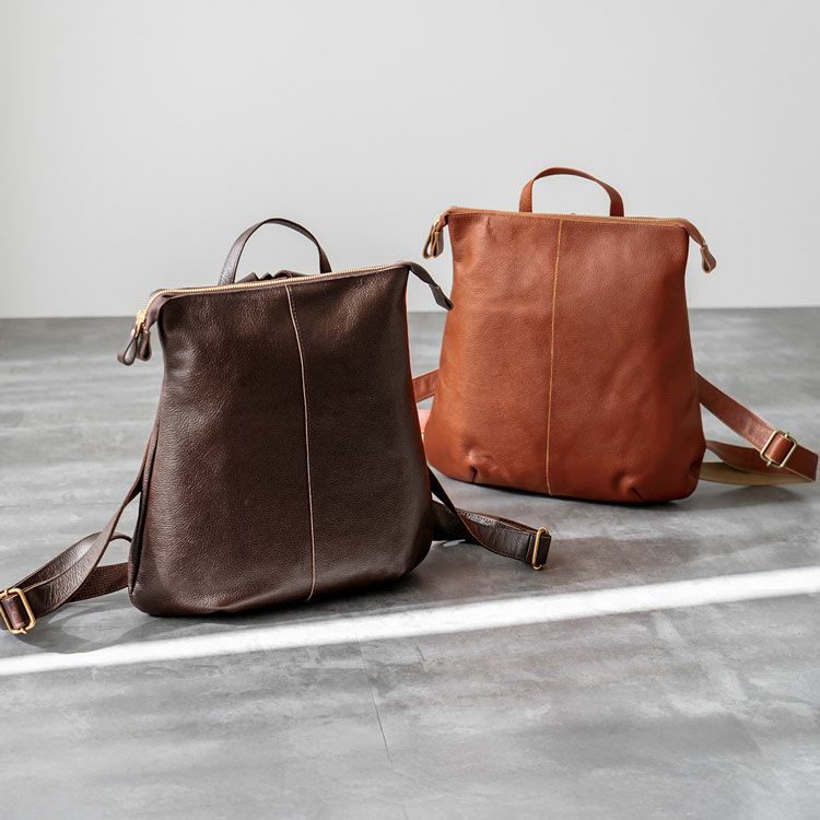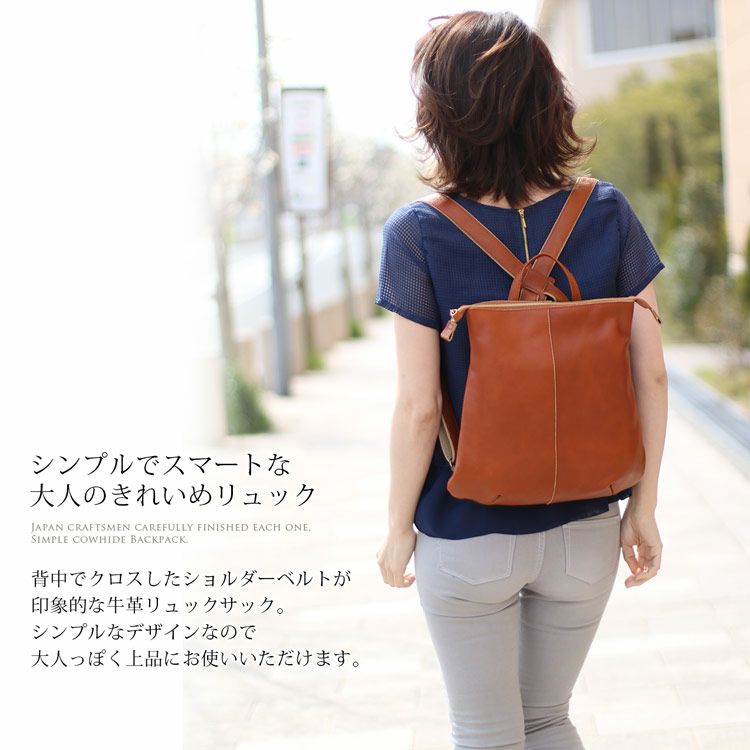 シンプルなデザインが上品で大人っぽい本革リュックサック。