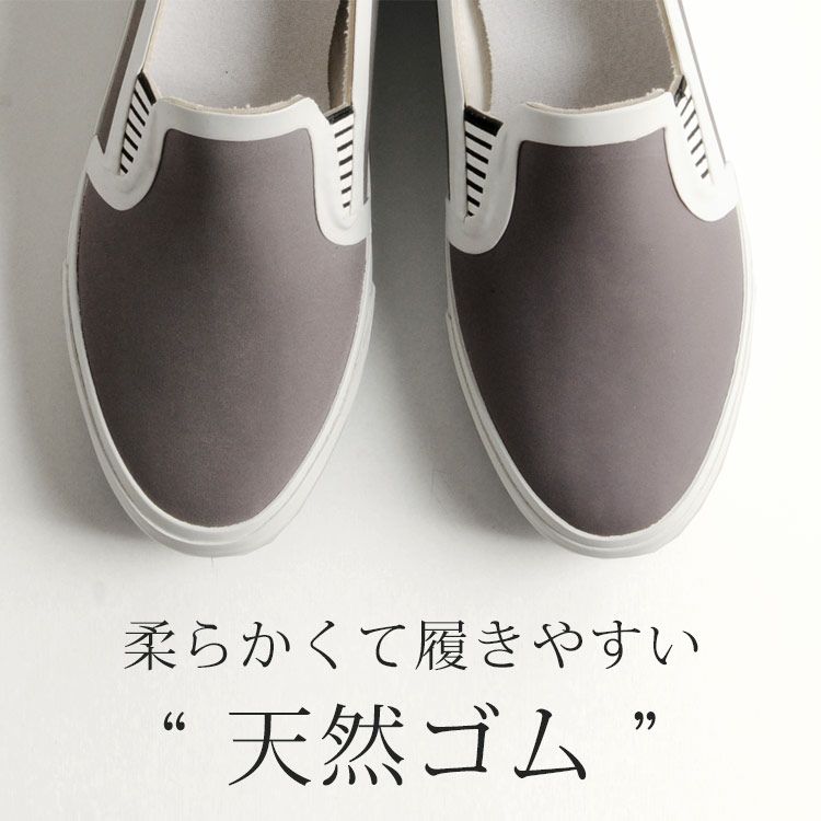 靴紐などがなく、すぽっと履けるスリッポンタイプのレインシューズ。