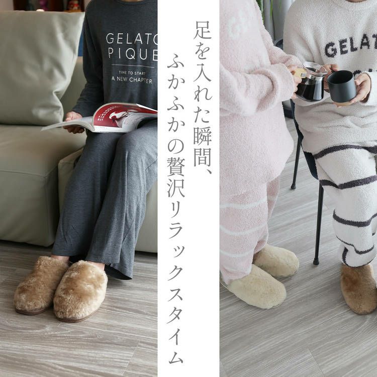 je'coule ムートン スリッパ メンズ レディース ルームシューズ あったか もこもこ ファー 低反発 7F (09000082r)