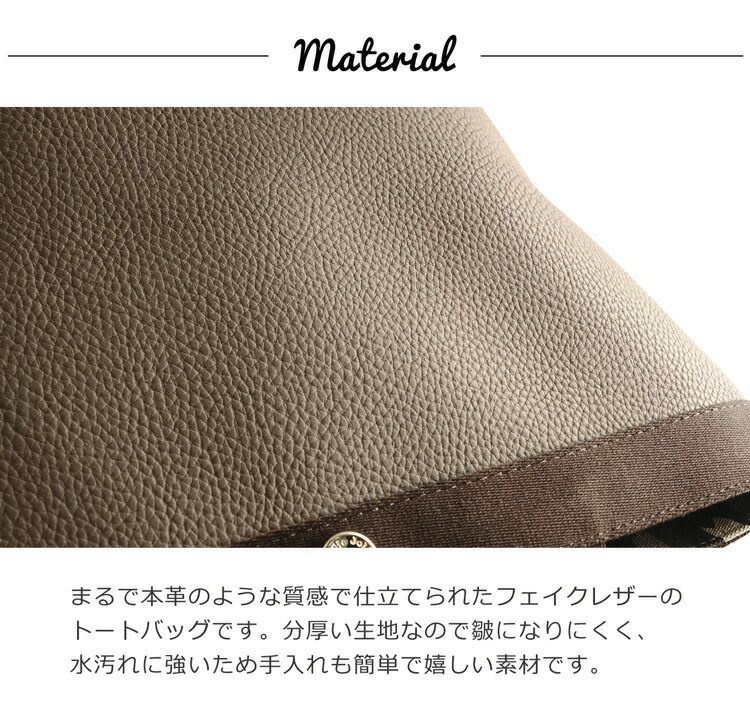 まるで本革のような質感で仕立てられたフェイクレザーのトートバッグです。