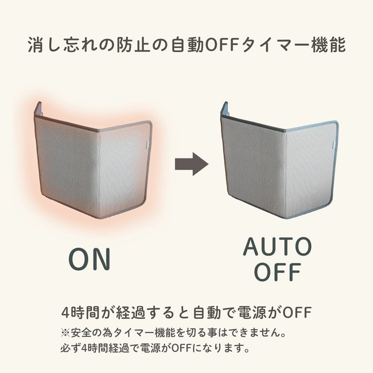 また、4時間が経過すると自動で電源がOFFになるため、切り忘れの心配もなく安心して使えます。
