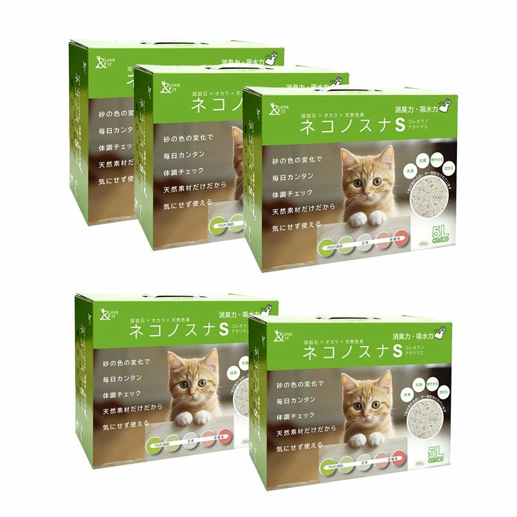 猫砂 健康チェック おから 5個セット 天然素材 ph おしっこチェック 流せる 固まる 軽い 消臭 脱臭率99% ネコノスナS 5L 猫の砂 抗菌 防カビ 溶岩石配合 飛び散らない 猫トイレ 燃えるゴミ 猫用 軽量 無香料