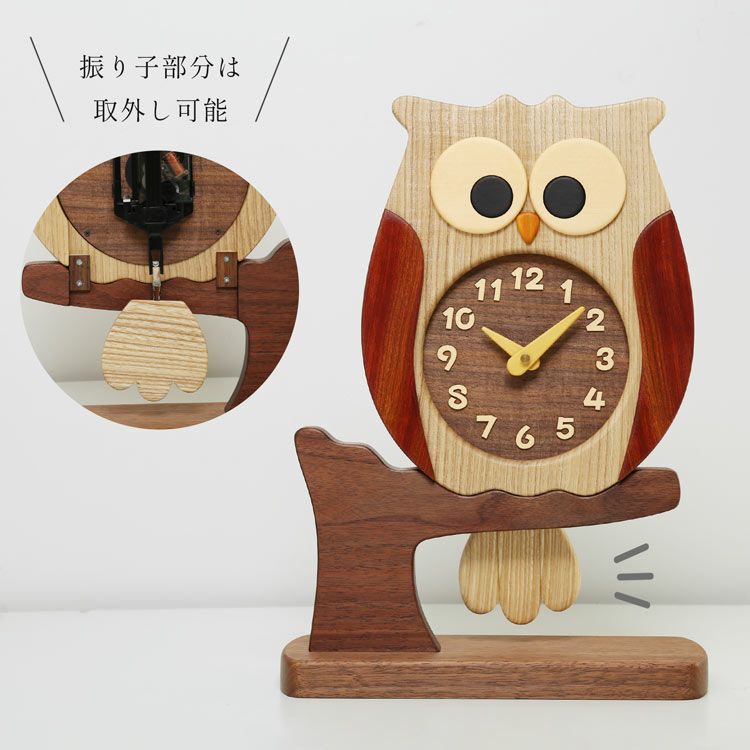 時計 アナログ ふくろう置き時計 置き時計 おしゃれ かわいい 天然木 ふくろう 木製 日本製 振り子時計 大きい インテリア 北欧 見やすい ウッド リビング 縁起物 動物 梟 プレゼント ギフト 4FA (09000546r)