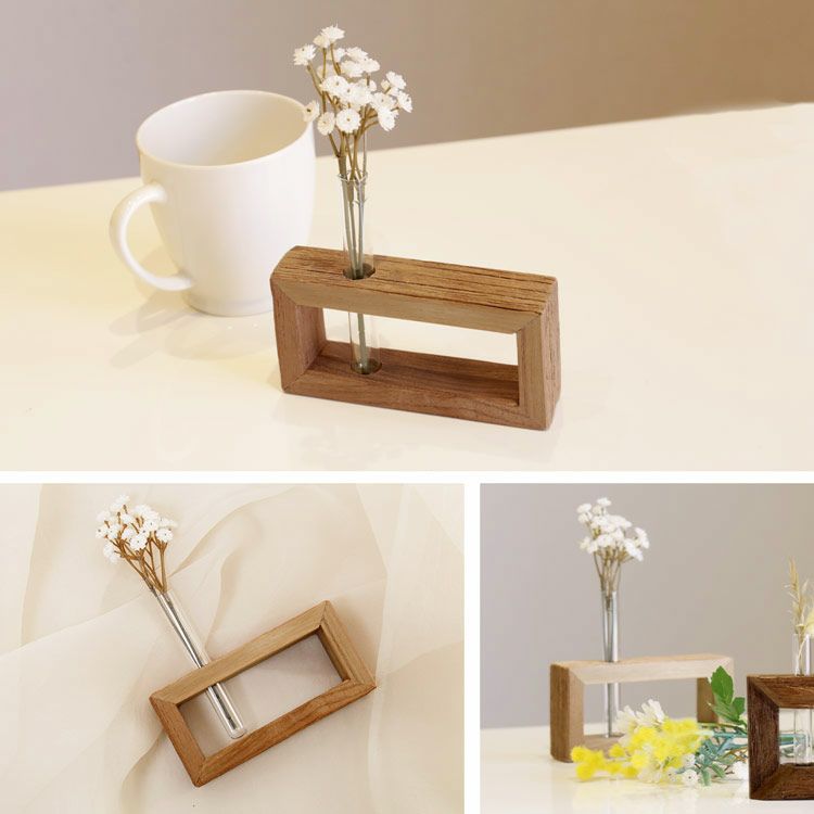 フラワーベース 一輪挿し 横長 木製 木 木材 オシャレ