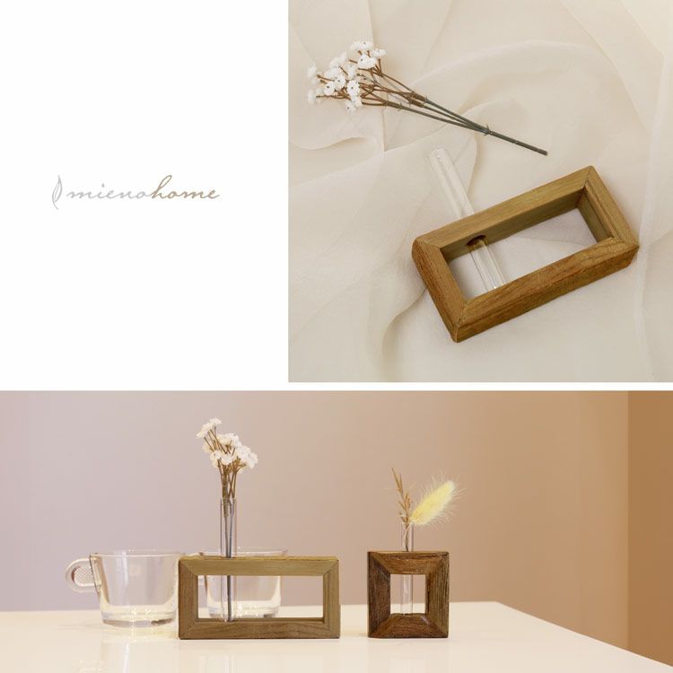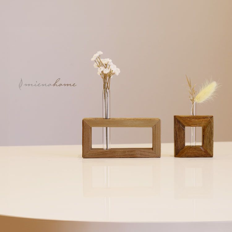 木製 フラワーベース 雑貨 インテリア 【名入れ 可能】 mieno home 木 天然木 一輪挿し 横長 花 花瓶 小さい アンティーク雑貨 春 新生活 母の日 プレゼント ギフト (09000574r)