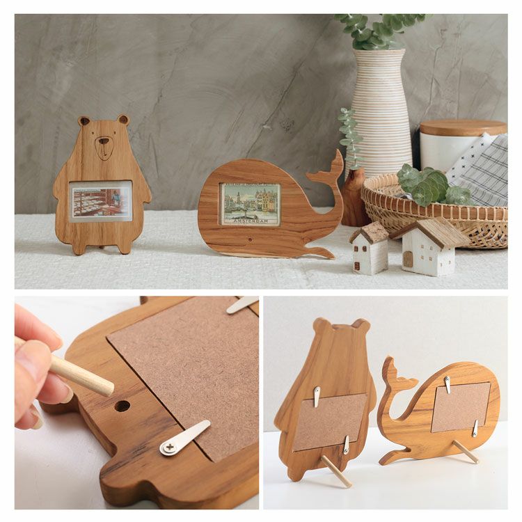 天然木を使用した、アニマル型のキッズフォトフレーム。