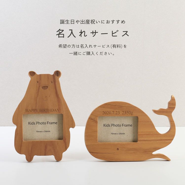 フォトフレーム 出産祝い 天然木 写真立て ミニ mieno home プレゼント ベビーキッズ 卒園 クマ くじら アニマル 動物 子供 記念 木製 無垢 ハーフ 赤ちゃん 横置き 命名 (09000575r)