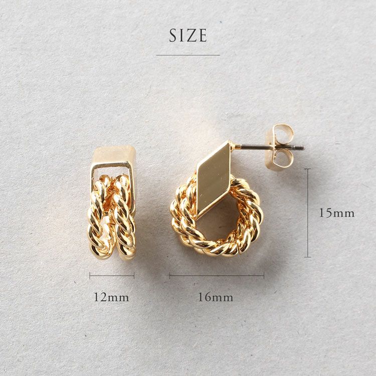 ツイストされたリングが重なったキャッチタイプのピアスです。リングが細かく揺れ、耳元を煌びやかに演出してくれます。