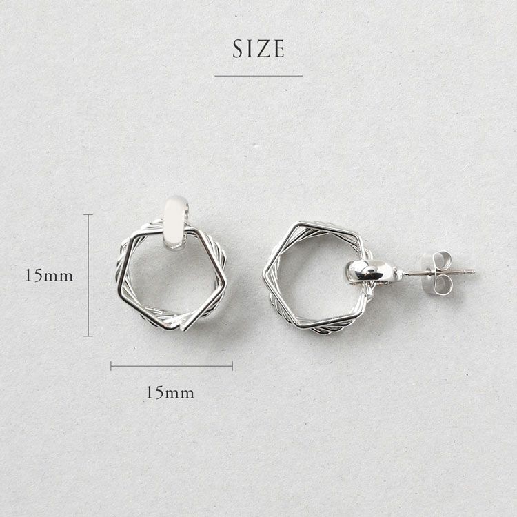 いびつな五角形が重なり合う、シンプルながら存在感のあるキャッチタイプピアスです。細やかに揺れるモードなデザインが大人な耳元を演出してくれます。