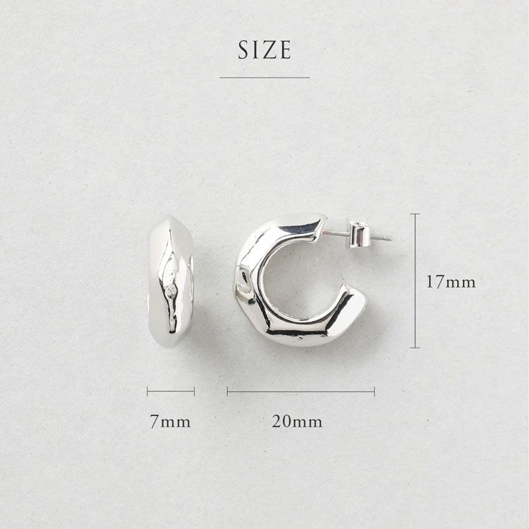 凹凸のある表面の質感が美しいキャッチタイプのフープピアスです。ボリュームもあり煌びやかな耳元を演出してくれます。