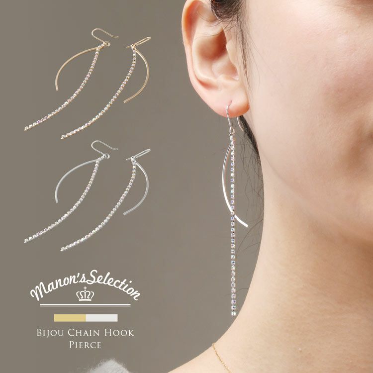 ビジュー チェーン フック ピアス ニッケルフリー 低アレルギー 素材 両耳用 金属アレルギー