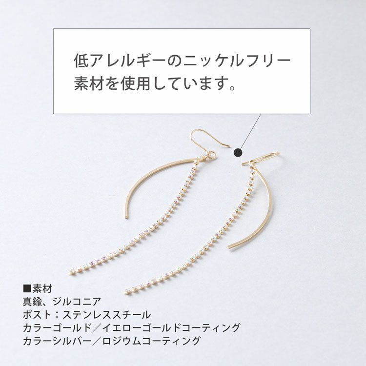 ストレートとストーンのラインが異なる動きで揺れ、女性らしさを際立ててくれるフックタイプのピアスです。