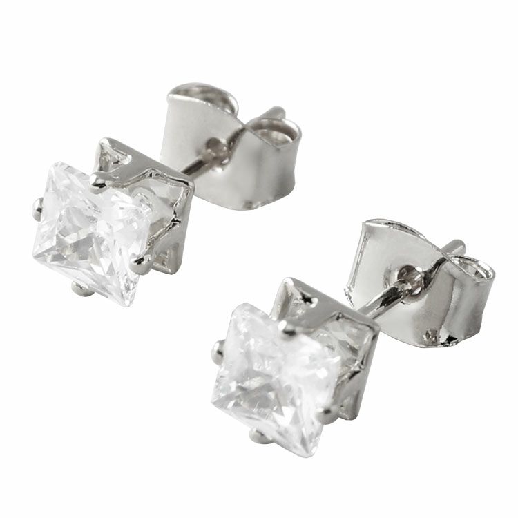1粒 スクエア ストーン ピアス 5mm ニッケルフリー 低アレルギー 素材 両耳用 金属アレルギー