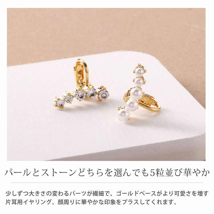 パールとストーンどちらを選んでも5粒並び華やかで、顔周りに華やかな印象をプラスしてくれます。