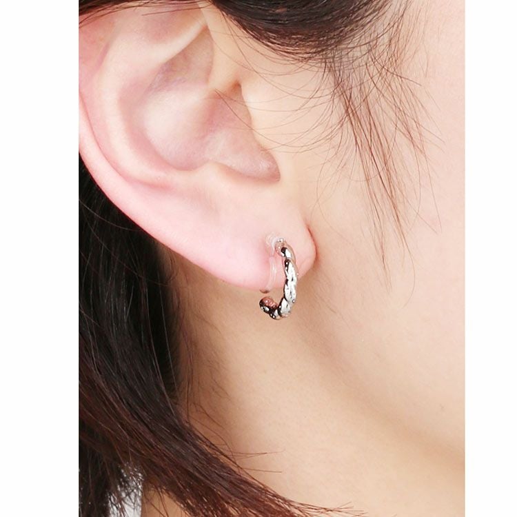 シングル ライン ツイスト デザイン ハーフ フープ イヤリング ニッケルフリー 低アレルギー 素材 金属アレルギー