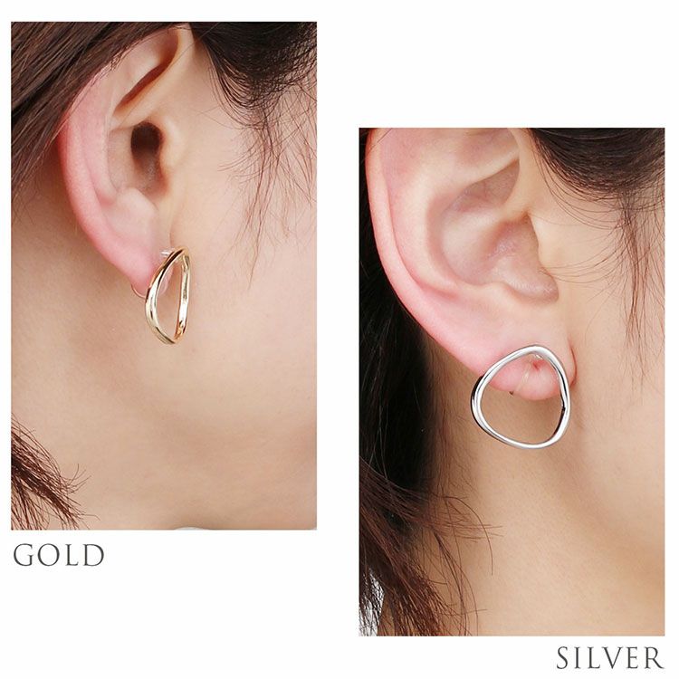 ゆるやかなウェーブが上品に存在感を放つ、ラウンドデザインのイヤリング。