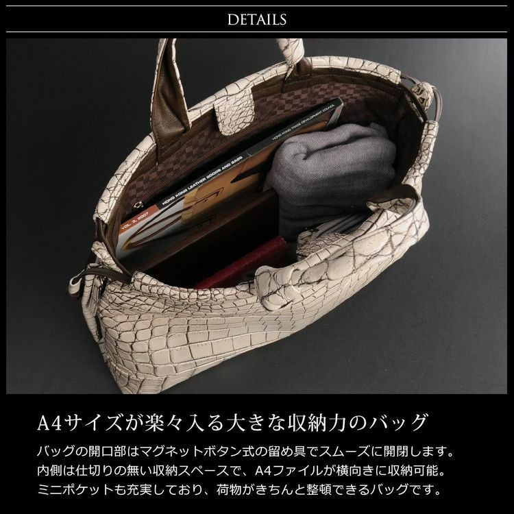 | 商品名:クロコダイル トートバッグ メンズ 大きめ A4 対応 日本製 JRA 2WAY 仕様 斜めがけ マット 加工 目地染め 全8色 |