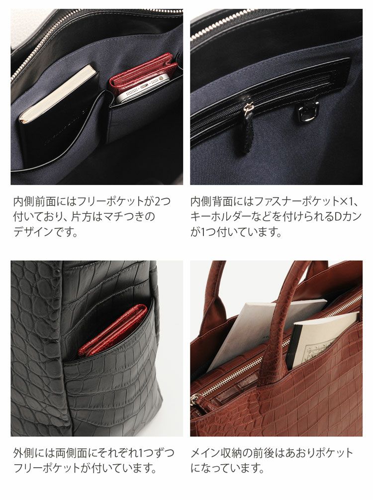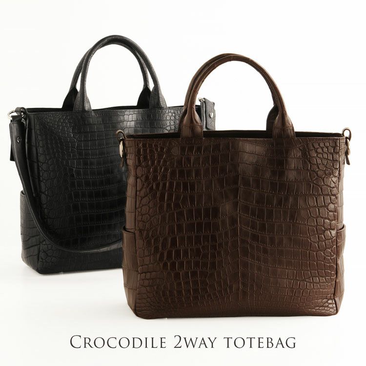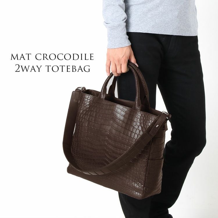 | 商品名:クロコダイル マット加工 トートバッグ 2WAY メンズ ダークレッド/ダークブラウン/ネイビー/ブラック |