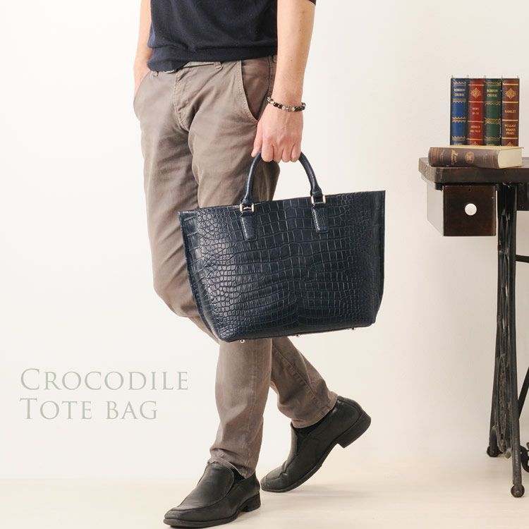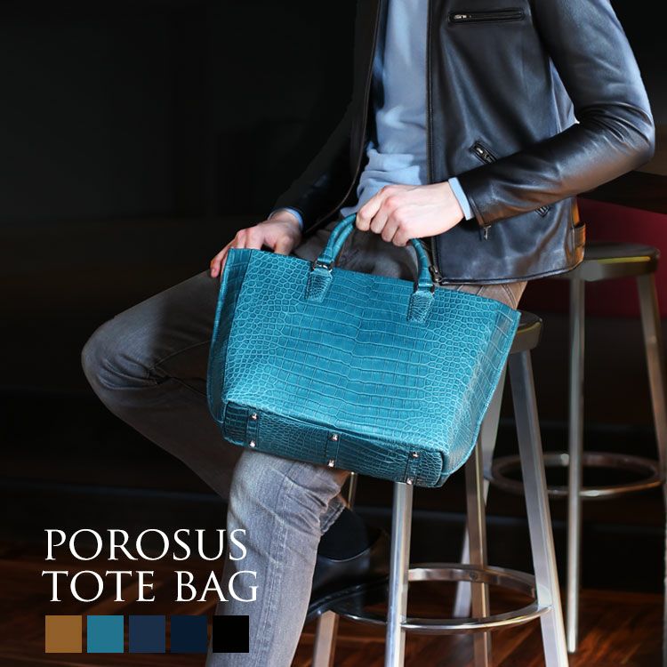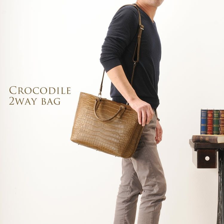 天然皮革 エキゾチックレザー スモール クロコダイル ポロサス トートバッグ マット加工 2WAY メンズ A4 モカブラウン/ダークターコイズ/ブルージーン/ネイビー/ブラック 本革 保証書 付き プレゼント ギフト mensbag