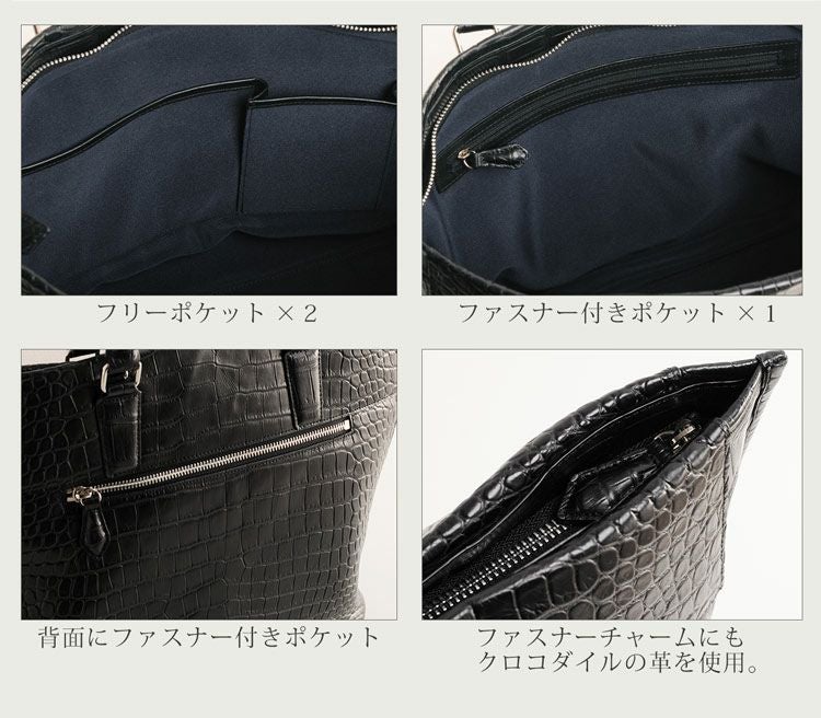 4. スモール クロコダイル ポロサス トートバッグ マット加工 2WAY メンズ A4 対応『クロコダイル保証書付き』 4FA