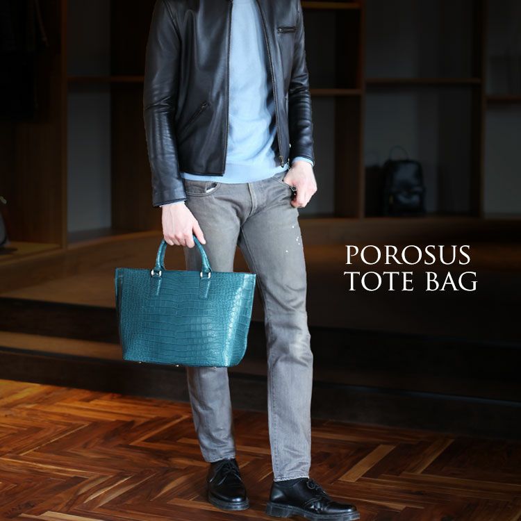 ポロサス スモール クロコダイル トートバッグ 2wayマット メンズ ターコイズブルー