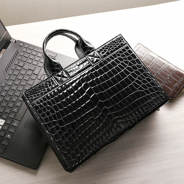 ※キーワード:クロコダイルバッグ メンズバッグ 本革 鰐革 ナイルクロコダイル センター取り ミニトートバッグ トート型 ビジネスバッグ 通勤バッグ B5サイズ ユニセックス 男性 女性 紳士 婦人