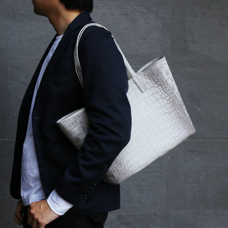 ヒマラヤ クロコダイル メンズ トートバッグ センター取り 内装 ラムレザー 形が変わる 2way シルエット ナイルクロコダイル クロコダイルバッグ トート型 大容量 ビジネス オフィス 鞄 4FA(06001856-mens-1r)