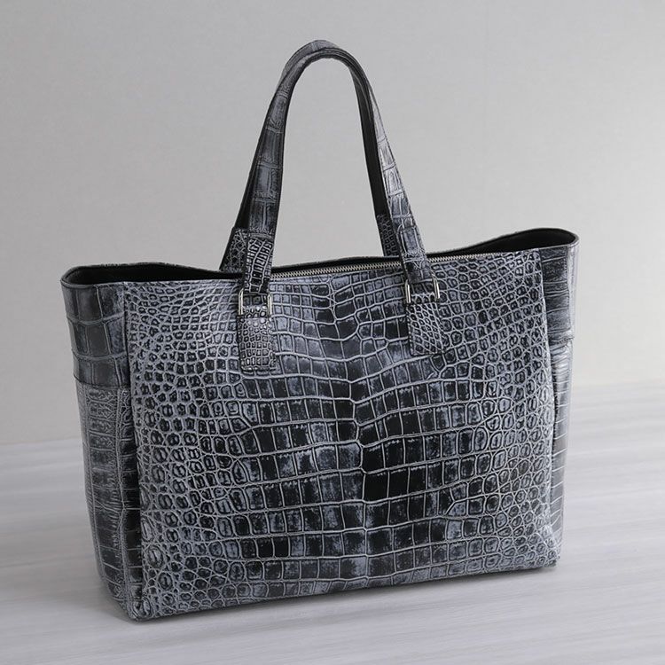 クロコダイル トートバッグ メンズ 日本製 センター取り 幅48cm 肩掛け 自立 ソフト 大きめ 大容量 A4 対応 通勤 オフィス ビジネスバッグ JRA あおりポケット 鰐革 保証書 付き