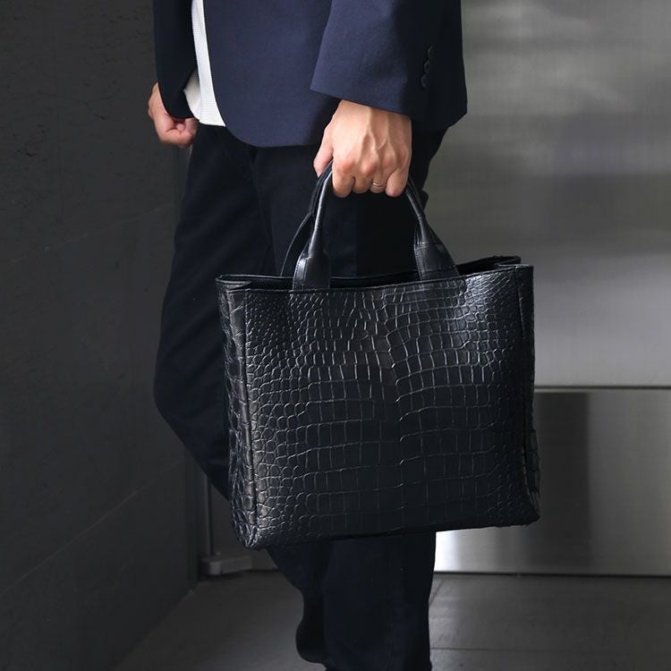 クロコダイル メンズ トートバッグ 日本製 センター取り A4 対応 軽量 マット 加工 鰐革 本革 鞄 保証書 付き JRA 4FA (06001942r)