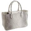 クロコダイルの腹部の革をバッグの中央に配しています。