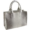 クロコダイルの腹部の革をバッグの中央に配しています。
