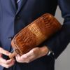 男らしい印象のカイマンレザーを使用したセカンドバッグ。