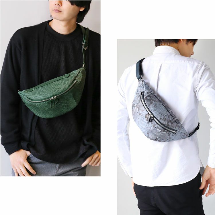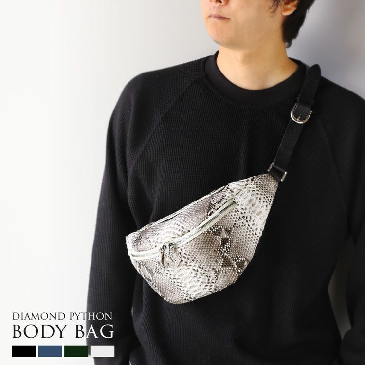 ダイヤモンド パイソン ボディバッグ メンズ きれいめ ファニーパック 横型 本革 軽量 軽い ワンショルダー カジュアル 蛇革 レザー 超軽量 ボディーバッグ ギフト プレゼント 男性 カジュアル 休日 お出掛け かばん 肩掛け 斜め掛け(06001826-mens-1r)