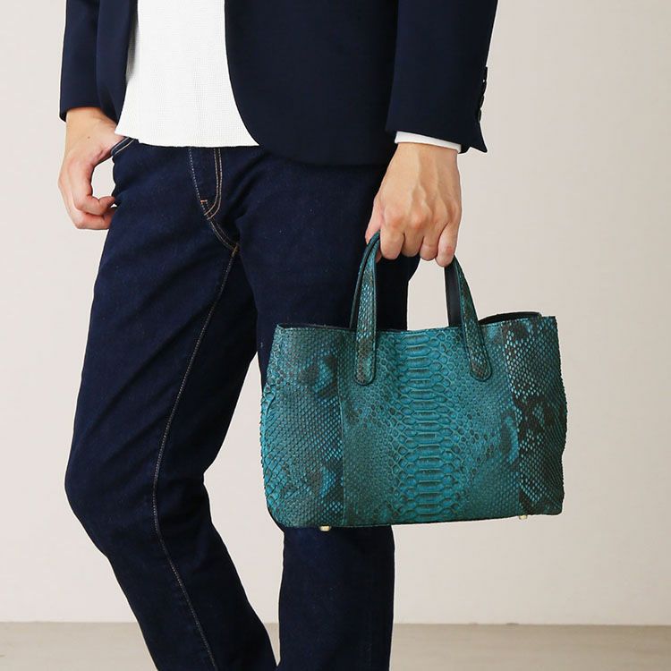 ※キーワード: 本革バッグ エキゾチックレザー かるいかばん 小さめバッグ 上品 金運 蛇柄 ナチュラル ターコイズ ネイビー 仕事 ビジネス カジュアル
