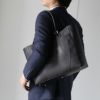 シボ型押しをした牛革で仕立てた大きなトートバッグです。