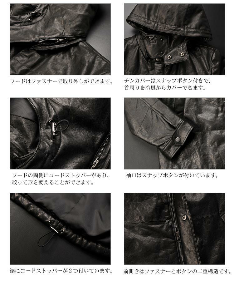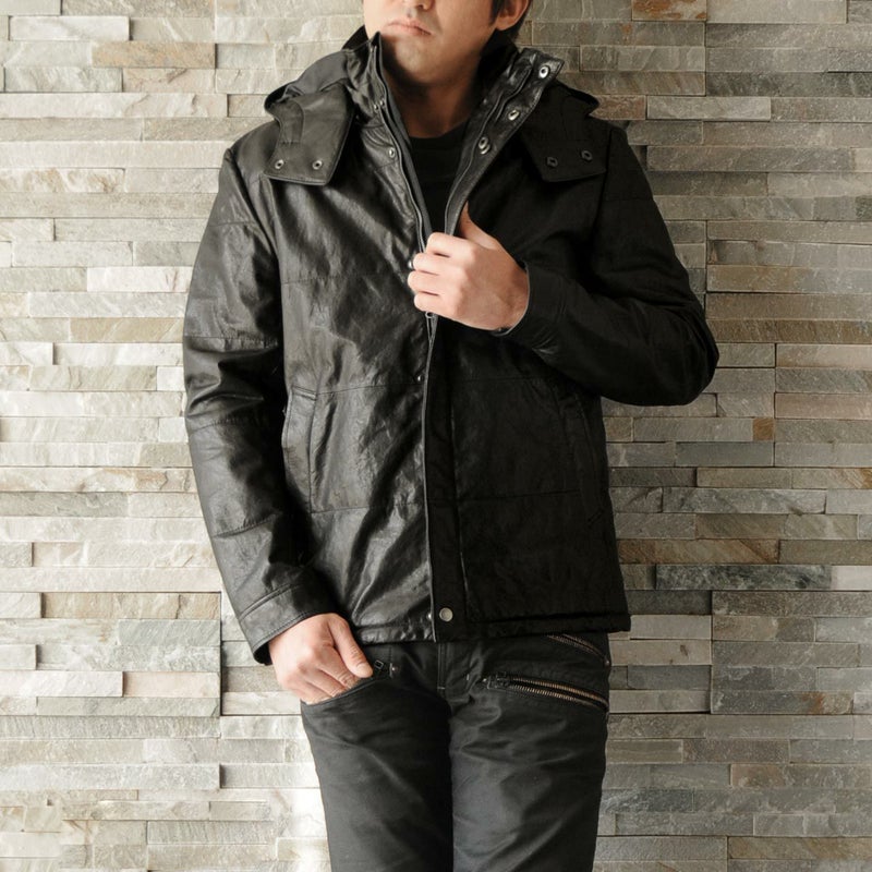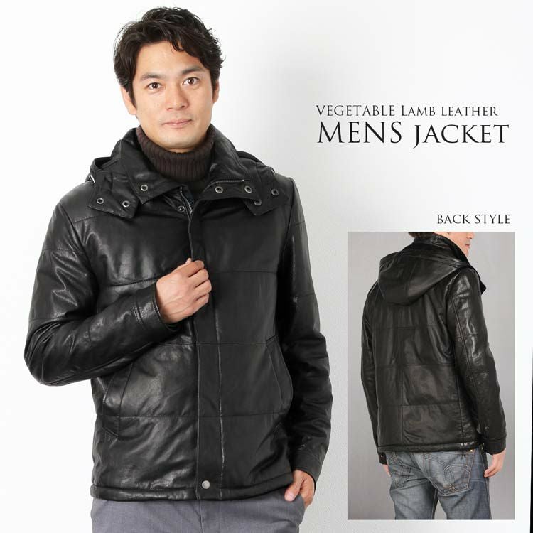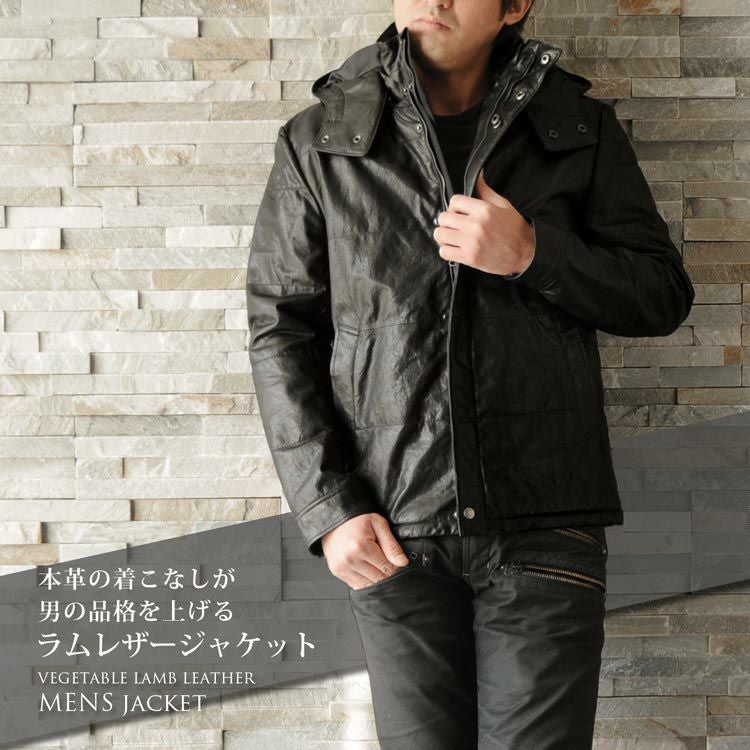 | 商品名:ラム レザー メンズ ジャケット ベジタブル加工 フード付き 秋冬 ブラック M/L/LL/3L |