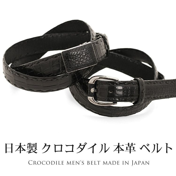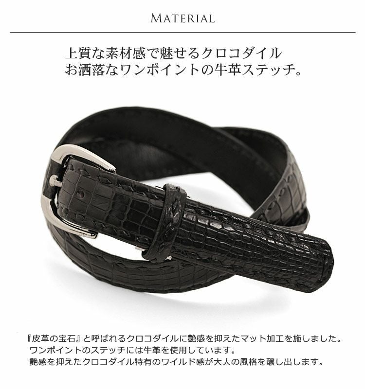 日本製 クロコダイル ベルト 35mm ハンドステッチ ピン バックル (No.06000355) |
