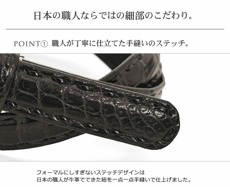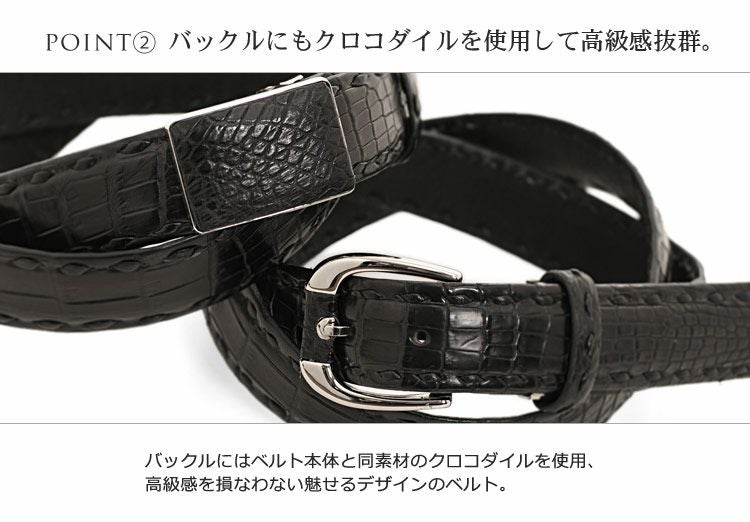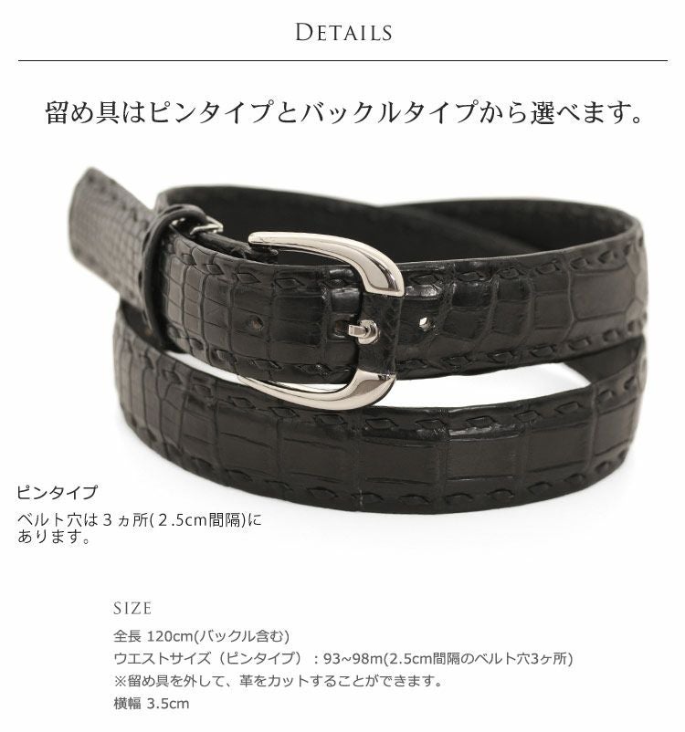 日本製 クロコダイル ベルト 35mm ハンドステッチ ピン バックル 4FA