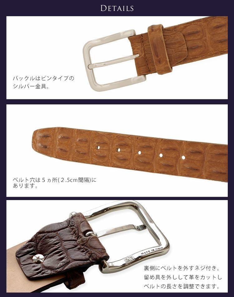 イタリア製で洗練されたデザインのレディースベルトたいへん貴重なスモールクロコダイルを使用しています。