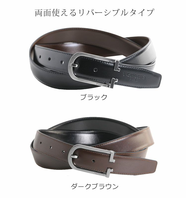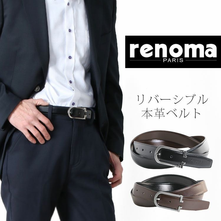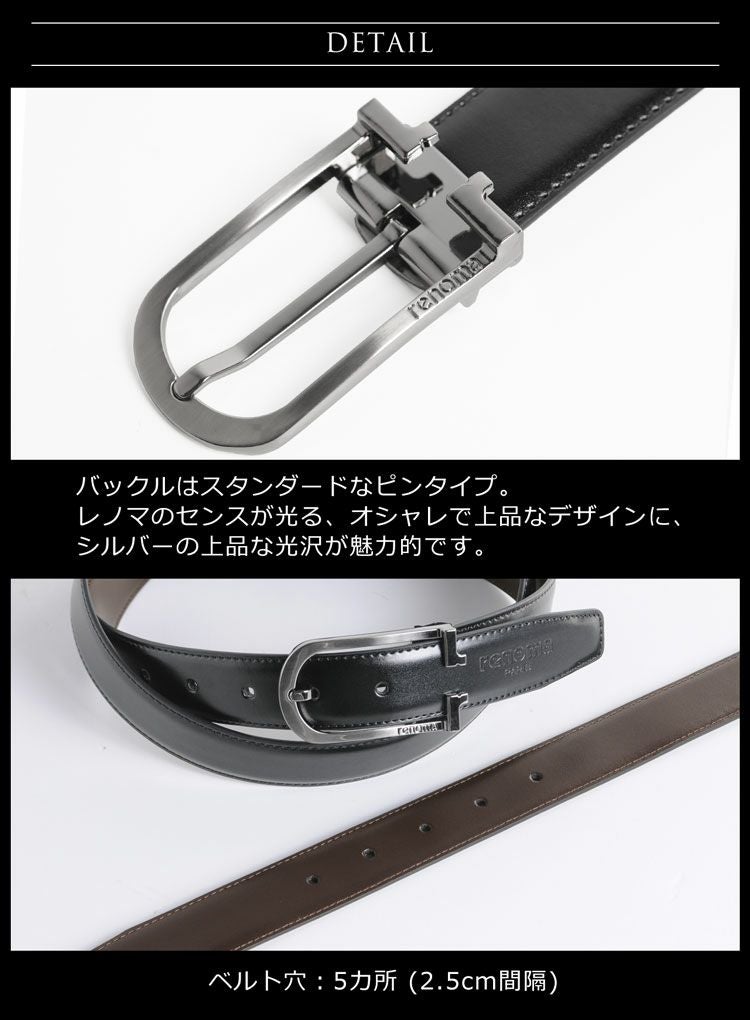 | 商品名:renoma 牛革 リバーシブル ベルト ブラック ブラウン メンズ ピンタイプ |