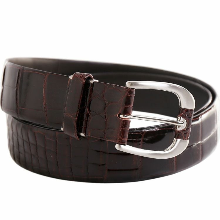 太さのあるクロコダイル メンズ ベルト。スーツに合わせて仕事、通勤用としてお使いいただけます。