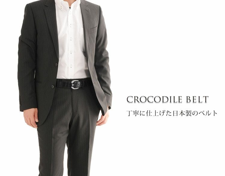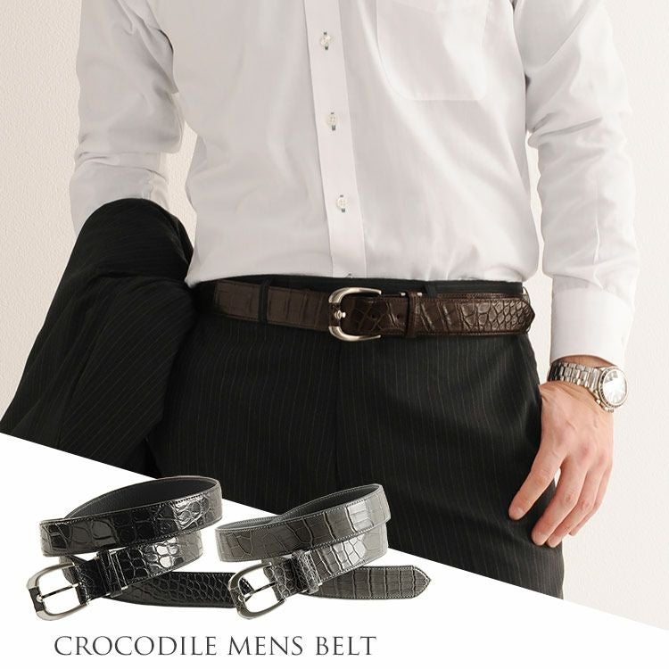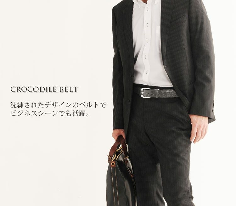 日本製 クロコダイル マット メンズ ベルト 35mm 牛ウラ ピンタイプ