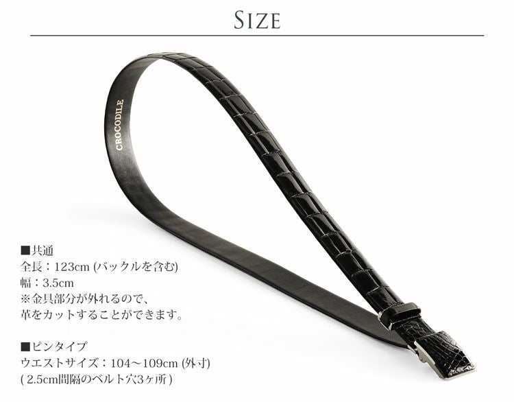 | 商品名:クロコダイル ベルト 35mm シャイニング加工 / メンズ |