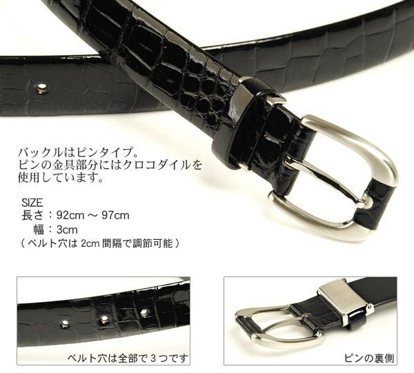 クロコダイルベルト クロコダイルシャイニングメンズベルト ピン