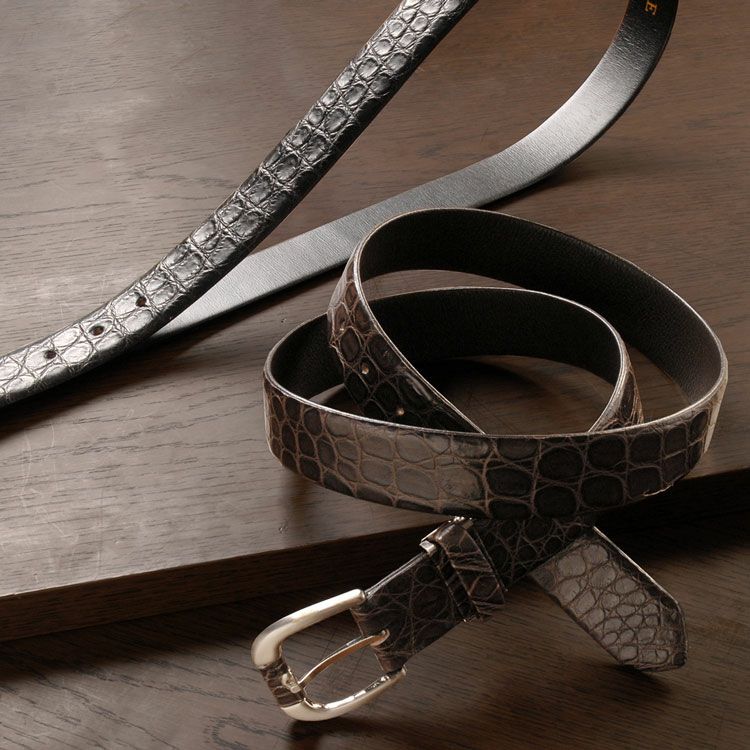 『皮革の宝石』と呼ばれるクロコダイルにマット加工を施したメンズベルトです。