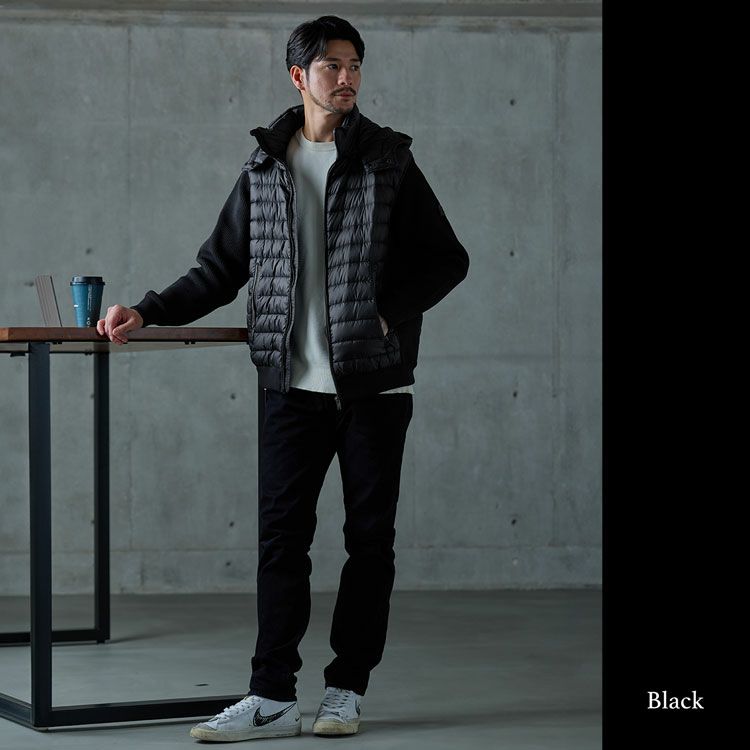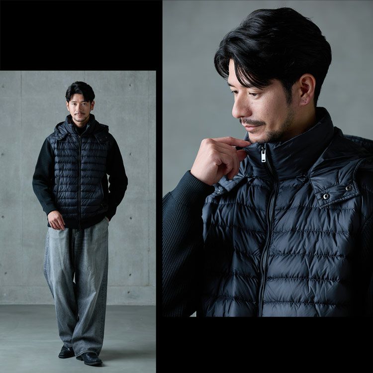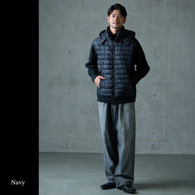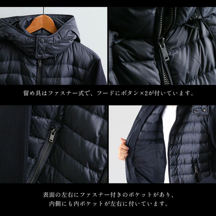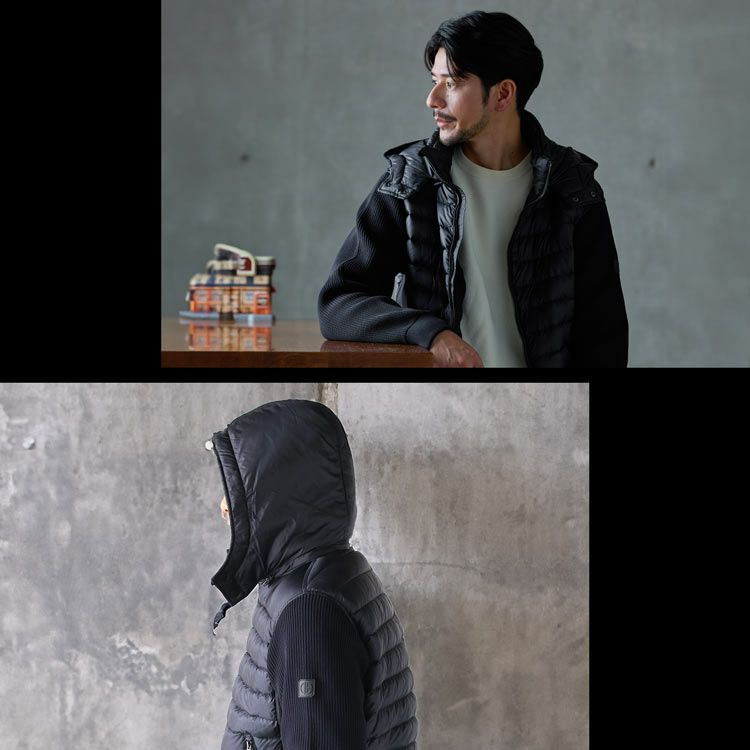 HALEINE ダウンジャケット メンズ フード付き アーム ニット デザイン 6F