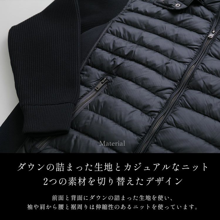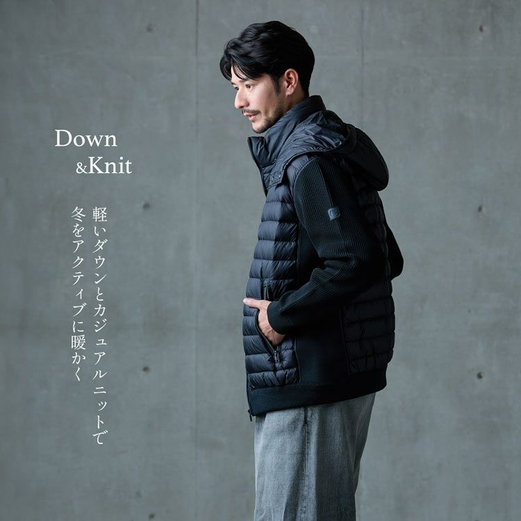 袖や肩回りから腰、裾周りはニットで仕立てたダウンジャケット。